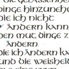 Regina Witt-Daedlow ist in Dortelweil geboren. Ihre Ausbildung als Technische Zeichnerin und ihr Ingenieurstudium in Verfahrenstechnik brachte sie dazu, sich mit der Schönschrift im Selbststudium zu beschäftigen. Vor fast 10 Jahren belegte sie den ersten Kalligrafiekurs bei Gertrud Rist, wo sie sowohl ihre Schriftenauswahl als auch ihre Materialkenntnisse und ihre Technik beständig erweiterte.